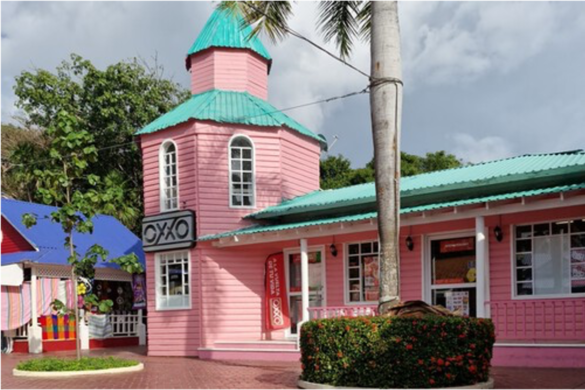 - OXXO Bahía Príncipe (Tulum) mezcla tonos tropicales con símbolos mayas para crear una pieza arquitectónica que parece parte del paisaje cultural.